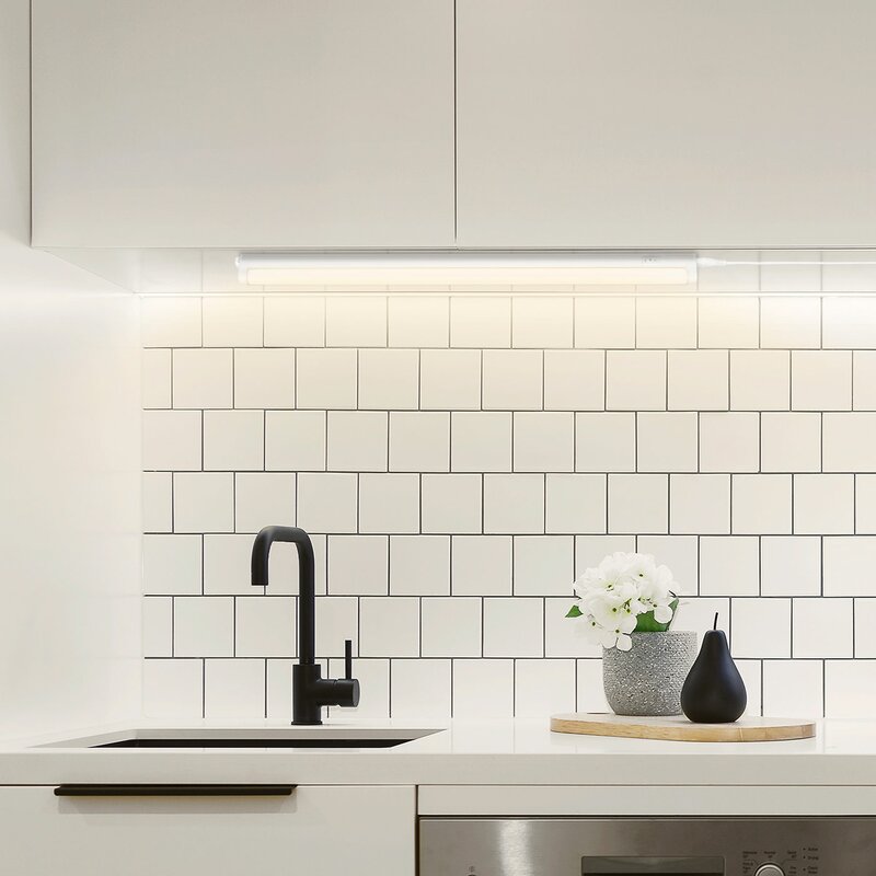 LED under-cabinet lights offer a practical and versatile lighting solution that can be ideally integrated under cabinets, shelves, or in display cases. Thanks to their slim design, they blend harmoniously into both modern and classic interior concepts. The luminaires feature an integrated switch for adjusting the light color. This allows you to flexibly choose between warm white, neutral white, and cool white light - depending on the specific application or personal preference. With the included connector, up to 12 luminaires can be linked in series and conveniently combined with one another. The energy-efficient LED technology ensures a long service life and low energy consumption, making these luminaires an environmentally friendly and low-maintenance lighting solution.
